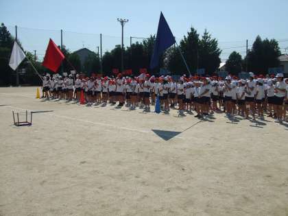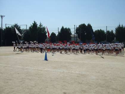 今日の運動会全校練習は,入場行進です。当日は胸を張って,前後に手を振り,膝を高く上げて堂々の行進をしてほしいものです。