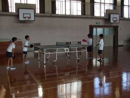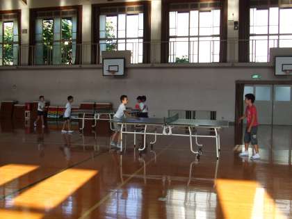 毎週木曜日は卓球です。ひとりひとりがコーチから指導を受けています。集中してがんばれ!