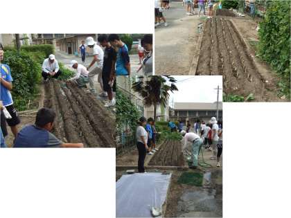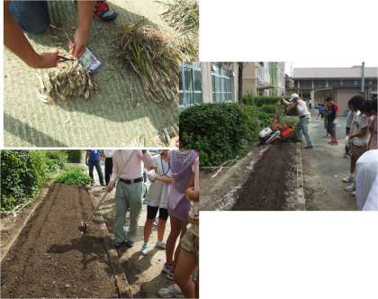 6年生は,農家の方や地域の食育ボランティアの方に来ていただき「九条ねぎ」をうえました。農家の方の丁寧なお話や,手際の良い作業には驚きました。丁寧な指導を受け,あっと言う間にねぎ植えは終わりました。これからの成長が楽しみです。
