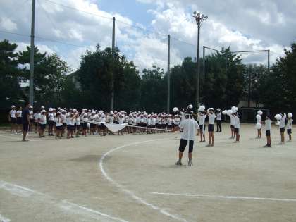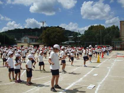 最後の全校練習です。開・閉会式,全校体操,応援練習などを行いました。