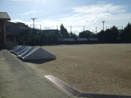おはようございます。蒸し暑い朝です。今日の午後からは雨の予報がでていますが,運動会前々日準備の予定です。昨日放課後,暑さ対策の一つとして児童応援席のテントを立てました。