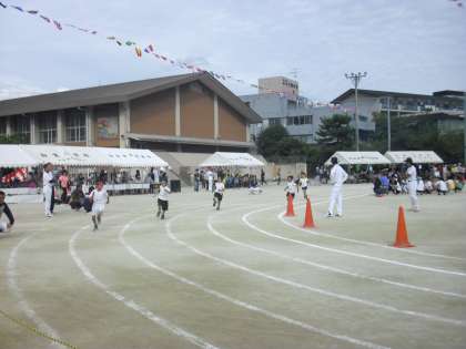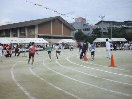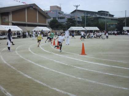 小学生リレー。低・中・高男女各1名でチームを作ります。この6名でバトンをつなぎます。