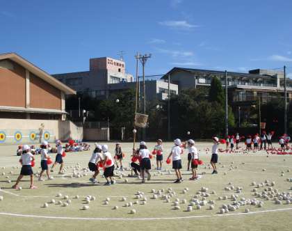 子どもたちは秋晴れのもと,のびのびと練習を楽しんでいます。