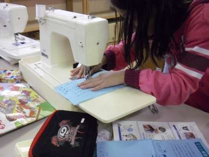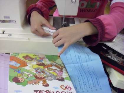 5年生は家庭科でミシン縫いに挑戦しています。やってみると大変難しいものです。