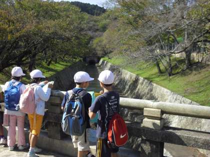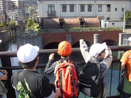 絶好の遠足日和に恵まれ,大津の琵琶湖疏水の取水口へと出かけました。