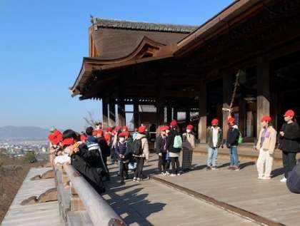 今日は,6年生が卒業遠足に行きました。総合的な学習の時間に校区内の世界文化遺産である仁和寺や龍安寺を見学し,調べてきた6年生がまとめとして,京都市内の世界文化遺産である清水寺,銀閣寺,二条城,そして金閣寺をバスで巡りました。感染対策も十分に行い,いつもなら観光客でいっぱいの観光地を,今はゆったりと満喫することができました。