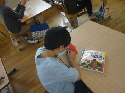 生活科の学習で,風を当てると回る「くるくる風車」をつくりました。画用紙に切り込みを入れたり,新聞紙を細長く丸めたり,小さな穴に糸を通したりと一つ一つの作業を真剣な表情で取り組んでいました。