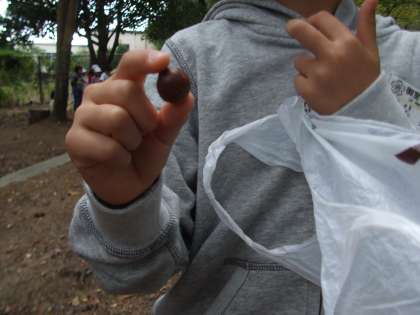 子どもたちは、学校でも少しずつどんぐりを拾っていたのですが、