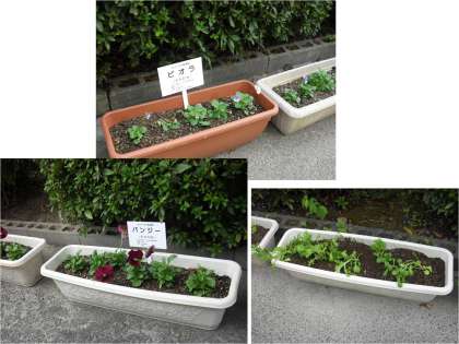 プランターに土を入れ,冬の花の苗を植えました。しっかり根付いてほしいものです。楽しみです。