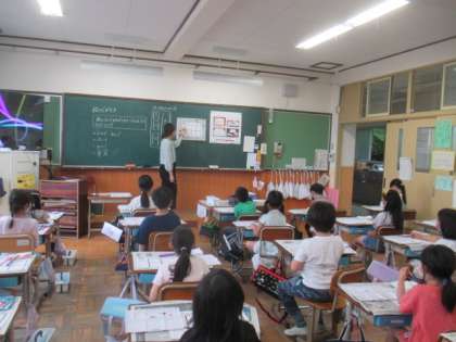 筆洗の使い方や机上の準備など覚えることがいっぱいありましたが,子どもたちは目をキラキラさせながら学習に取り組んでいました。