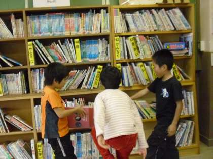 今日は雨のため外では遊べません。昼休みの図書室をのぞいてみました。