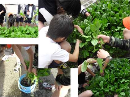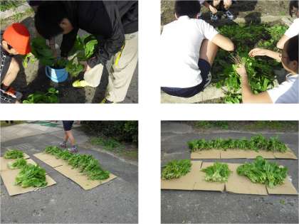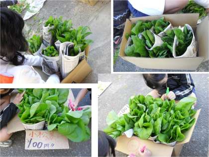 6年生の冬野菜がいよいよ22日(火)に出荷されます。学習発表会に来られた際にお立ち寄りください。無農薬水菜,壬生菜,小松菜一束1コイン100円です。