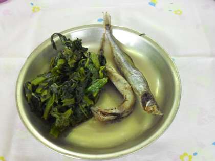 ほうれん草のおかか煮 ししゃもの唐揚げ