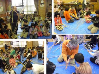 3年生は地域の方4名と保護者ボランティアの方3名のご指導のもと,「縄綯い」を教えていただきました。始めは全然綯えません。しばらくして手取り教えてもらって,慣れてくるとなんとか綯うことができてきました。大変貴重な経験となりました。熱心なご指導ありがとうございました。