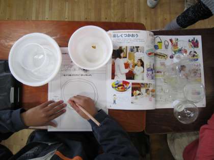 家から持ってきた,「空きトレー・ペットボトル・空きカップ・空き箱・紙コップなど」を材料にして,作っていきます。
