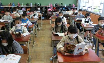 朝読書は、とても静かです。しっかり読書をしています。
