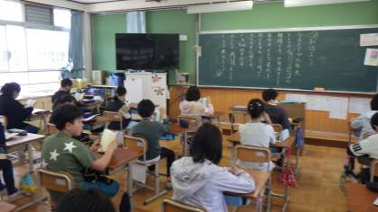 毎朝の読書タイムの様子です。時間になると落ち着いて10分間の読書をしています。6年生にふさわしい図書を選べるように声をかけていきます。