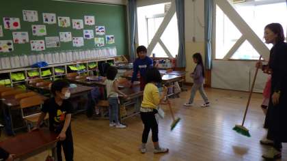 今週から、1年生も掃除が始まるということで・・・頼りになる6年生が掃除のお手伝いに行きました。掃除でも最高学年として素敵な姿で引っ張っていきましょう。