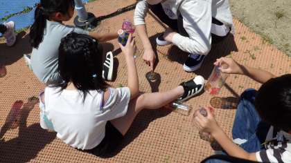 見え方を想像しながら色を塗り、実際に太陽のひかりに通してみると…