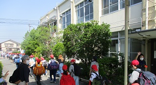 学校で出発式を行いました。司会をしたり、出発の言葉を話したりする子ども達は、しっかり役割を果たしていました。また、聞いている子ども達もしっかりとお話を聞いていました。先ほど、花背山の家に向けて出発しました。天候に恵まれ、充実した活動ができることを期待しています。