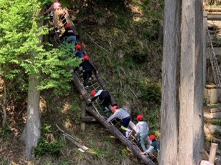 お昼ご飯を食べた後、「冒険の森」にあるいろいろな遊具等をつかって活動しています。
