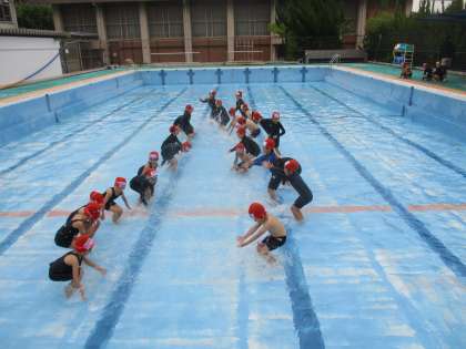 本日は、水の中を歩いたり、ワニ泳ぎをしたり、列車になったりしました。