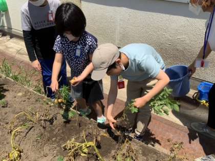 昨年度から3組で育てていた野菜の収穫をしました。にんじんとじゃがいもとたまねぎです。何を作って食べようかな・・・。みんなでこれから相談する予定です。