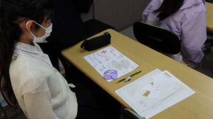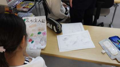 考えたポップに色を付けています。どれも、とても素敵なデザインです。