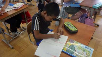国語科では文の組み立てを学習しています。主語や述語についてや、一文を二文にするなど、文の組み立てについて学びました。