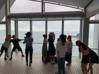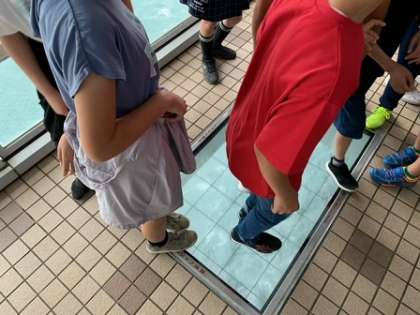 渦の道に到着して、ガラスの床から下をのぞき込んだり、その上に立ってみたりするなど、ドキドキするような時間を過ごしました。