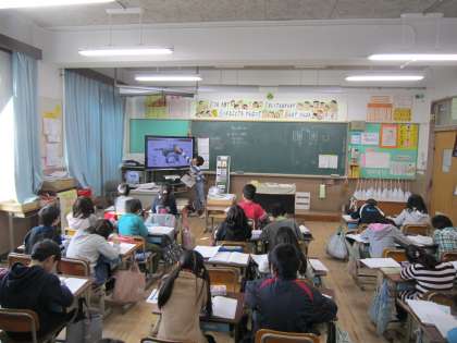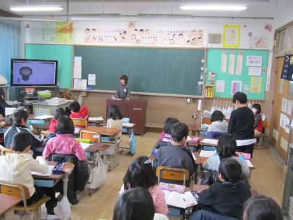 前回は近くの人とペアを変えながら,二人で調べたものを交流しましたが,今回は,学級全体の前で,みんなに発表をしました。