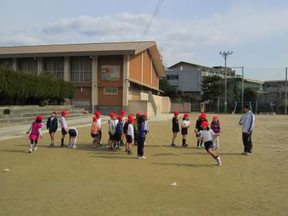 体育で,なわとび(長なわ)をしています