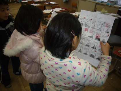 百人一首の暗唱や竹取物語の暗唱を聞いてくれています。