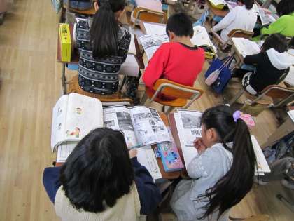 3年生の子ども達は,国語の「本で調べて,ほうこくしよう」の学習で,自分が生活の中などで疑問や問いに感じた事を百科事典で調べ,ほうこく書にまとめる学習をしています。