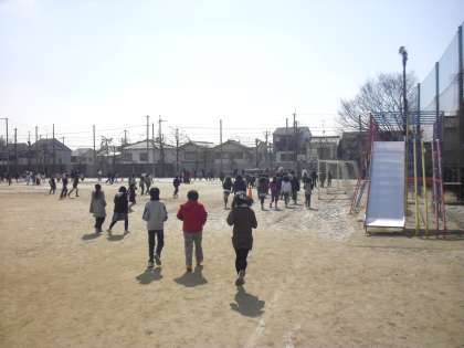2月の(月)のアスレチックタイムは「5分間走」です。今日は今一つスピードがなかったような気がします。