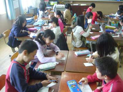 3年生は,国語でカルタの学習をしたので,カルタの形式で思っている事や感謝の言葉などを書きました。