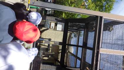 1・2年合同のなかよしグループに分かれて、動物を見ながらクイズラリーを行います。