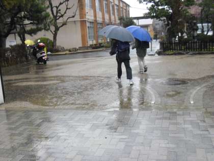 雨の日の正門