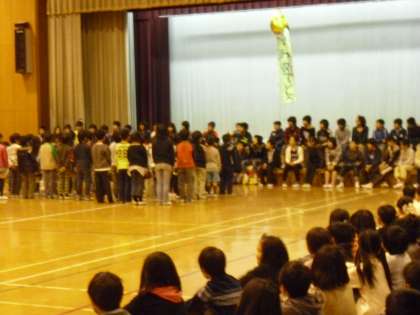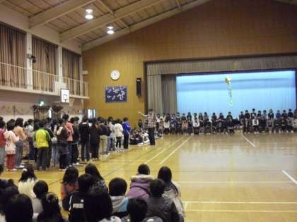 次に児童会引継式&プレゼント渡し(計画委員)がありました。いよいよ各学年の出し物です。2年生,4年生と続きます。