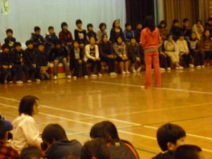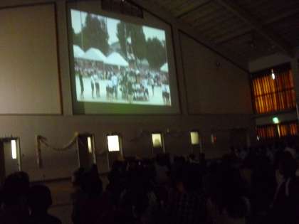 いよいよ6年生の「思い出のビデオ」放映です。今年1年間の主な行事に取り組んでいる映像が流されました。そして,6年生からのお礼のことば&出し物がありいよいよクライマックスです。最後に5年計画委員より終わりの言葉です。