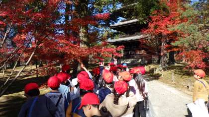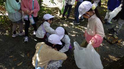 生活科で今度は御室仁和寺へ「あきみつけ」に行きました。御室仁和寺には、大きいどんぐりや小さいどんぐり、帽子をかぶったどんぐりなどたくさんの種類のどんぐりがありました。