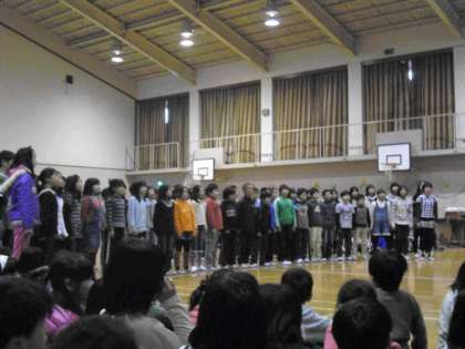 「6年生を送る会」がありました。5年生は手作りのメッセージカードをプレゼントしました。また,在校生の中で,一番大きな学年であることを自覚しながら,しっかりと参加することができました。司会の「5年生よろしくお願いします。」という言葉に「はい!」と全員で元気に返事をして,体育館の中央にパートごとに二列にすっと並び,学級代表がはきはきとした声を張り上げ,6年生への贈る言葉を言いました。それから全員で「空高く」を二部合唱しました。大きな体育館のほぼ真ん中から,舞台の手前に座る6年生へ,今までの感謝の気持ちと「空高く舞い上がり,そして,未来に向かって飛びたってほしい!」と思いをこめて歌いました。目の前の6年生に一生懸命に思いを届けようとするすばらしい歌でした。きっと,6年生全員に5年生の思いが伝わったと思います。次は,もう一度,卒業式でも歌います。6年生へもっともっと思いが伝わるように,卒業式の練習の中で,一生懸命練習を続けていきます。