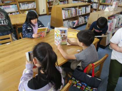 1年生の子どもたちは図書館が大好きです。今日も図書館で普段読まない本を読んでみたり、友達と新しく入った本を読んだりと楽しく過ごすことができました。