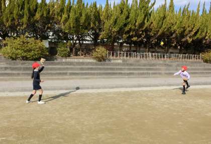 大谷翔平選手から贈られたグローブを使ってキャッチボールをしました。