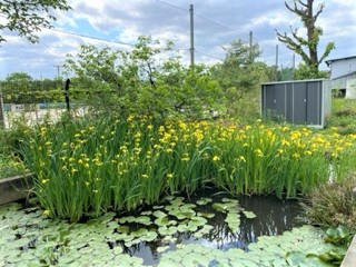 ビオトープのハナショウブが、きれいに咲いています。