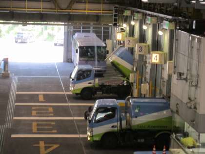 クリーンセンターの中を歩いていると,どんどんパッカー車が入ってきて,運んできたゴミ(今日は資源ゴミでした。)を決まった場所に上手に落としていました。
