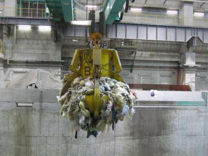 運ばれてきたゴミを,機械を操作してつかみ上げ,次の場所に入れる作業を見ました。