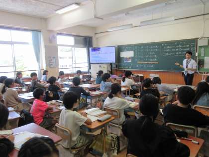 1組では、算数科『小数のかけ算』を学習しました。「かけ算の積の大きさについて調べよう。」をめあてに学習を進めました。「かける数=1」「かける数<1」「かける数>1」それぞれのときの積の大きさをまとめました。