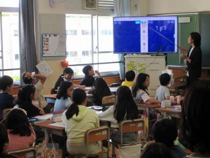 2組では、国語科『漢字の成り立ち』を学習しました。「四種類の漢字の成り立ちについて知ろう。」をめあてに、いろいろな漢字の成り立ちを、一つ一つ予想しながら答えを見つけていきました。