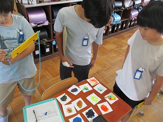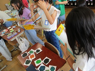 絵の具を混ぜたときに出てきた線や色や形に注目して
